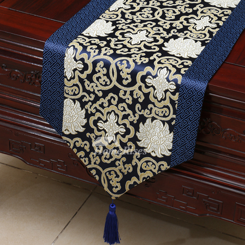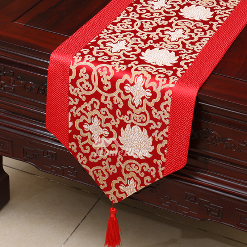 A: For tablerunner, the drooping length is necessary to have the great effect, in general, the length of tassel is about 10cm to 15cm, and the height of both ends of triangle is about 15cm. Customers could choose the dimension according to your own situation.