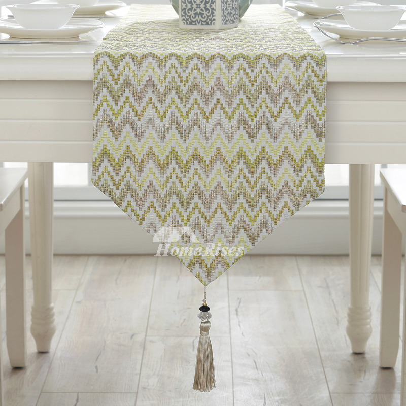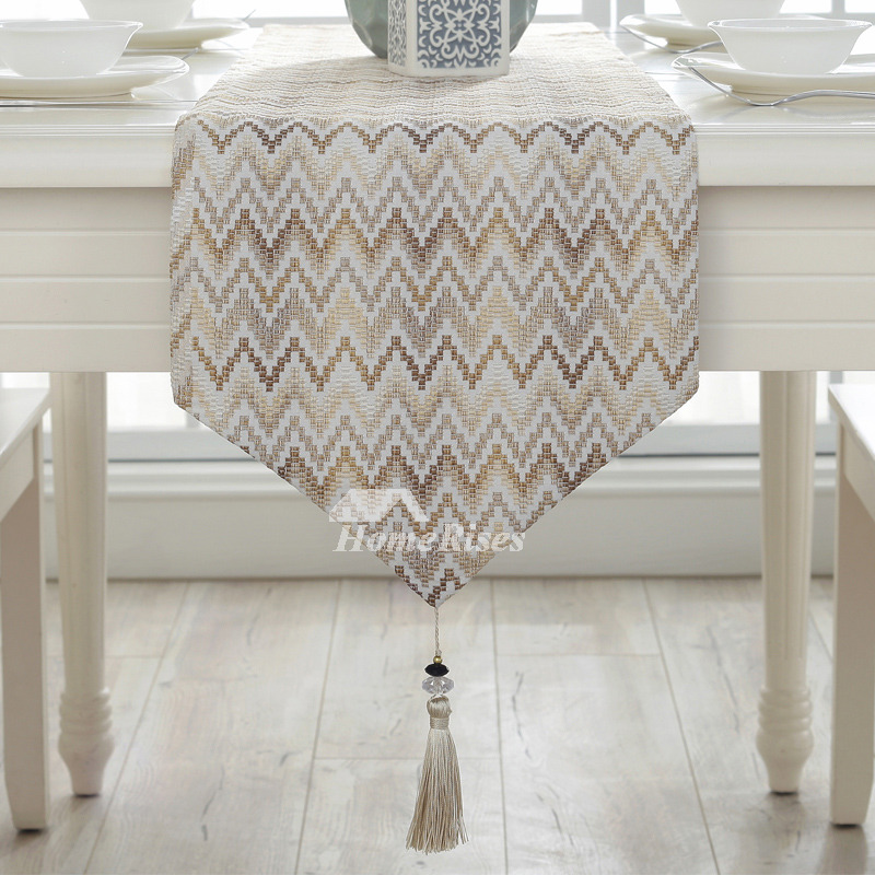 A: For tablerunner, the drooping length is necessary to have the great effect, in general, the length of tassel is about 10cm to 15cm, and the height of both ends of triangle is about 15cm. Customers could choose the dimension according to your own situation.