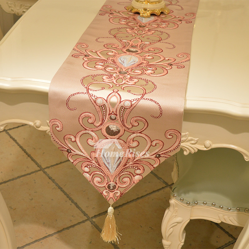 A: For tablerunner, the drooping length is necessary to have the great effect, in general, the length of tassel is about 10cm to 15cm, and the height of both ends of triangle is about 15cm. Customers could choose the dimension according to your own situation.